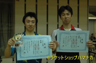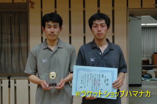 1部ダブルス優勝の松本・黒石組(まつもと文具、フットワーク)