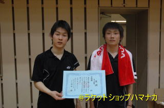 優勝の松本・黒石組に一歩及ばなかった田坂・竹本(ラケットショップハマナカ)。