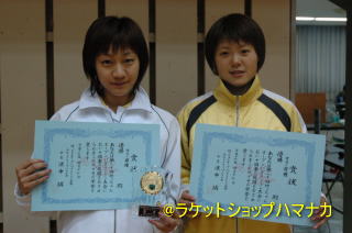 | 優勝小柳知子、準優勝横山エミ(YONEX)。対戦直後と表彰式。 |