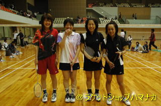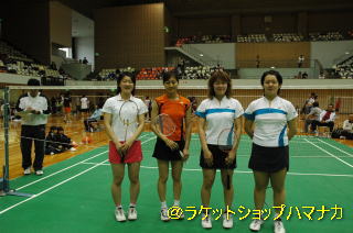 優勝の白山・横山(YONEX)と準優勝の安藤姉妹(松山大/西農OB)(横山さんは日本チームモデル)