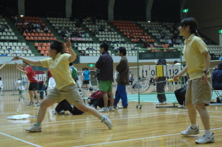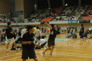 藤本・森岡(愛媛大学)。2回戦で横山・工藤から2ゲームとも2桁得点を奪う。 |