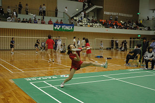 第1シードゾーンは、シードのヨネックス横山エミ選手は当然存在感があるが、その中にはレベルの高い大学生が集まったようである。鏡奈保子(愛媛大学)は2回戦で横山に挑戦し善戦した。やはり愛媛大学の森岡が激戦を勝ち抜きベスト8まで上がった。