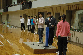 女子オープン単決勝は招待選手同士となった。女性の観客がコートの周りを囲んだが、男性の観客も結構多い。 |