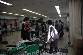 | 参加人数が倍となった二日目は、メーカーブースにひっきりなしに人がやってくる。写真はヨネックスブース。 |
