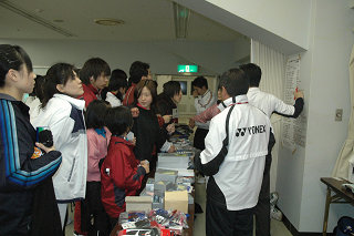 ヨネックスのパワークッションの生卵反発実演はなかなかうけた。 |