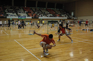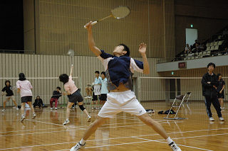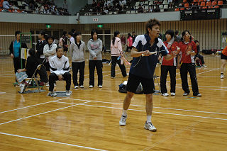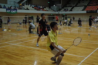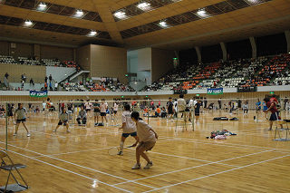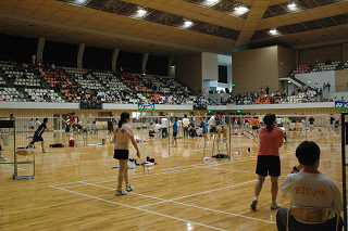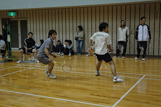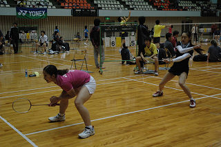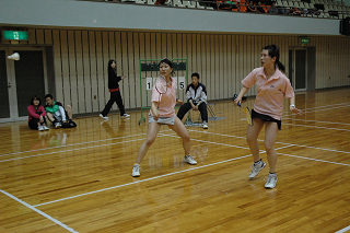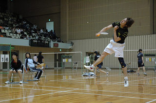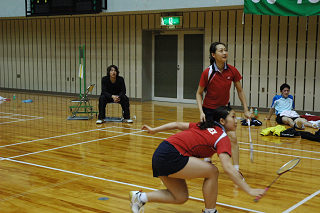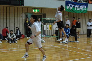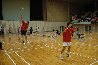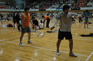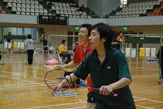 WILSONの金の剣と銀の鉾で登場のアメアスポーツの長澤・岩城組。楽しいバドミントンをして撃沈。 |
