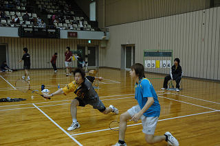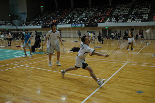 | ベスト4時原・岡田(四国ガス・フットワーク)第2シードのヨネックスペアに1ゲーム先取されたが、結局棄権となり、勝ち。その後も勝ちベスト4. |