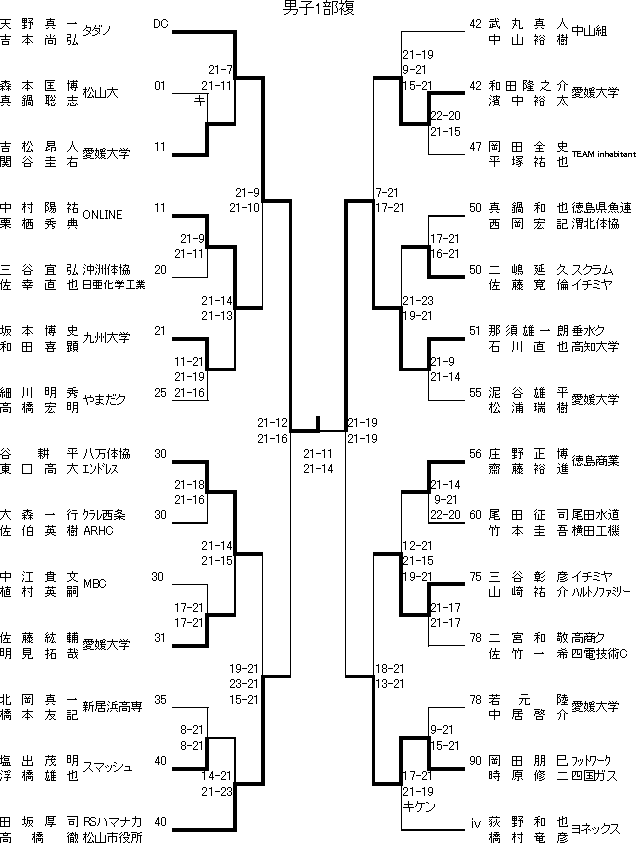 | 二嶋・佐藤(スクラム・イチミヤ)、1回戦屈指の好カード真鍋・西岡をファイナルで下したが、準優勝の石川・那須にやはり接戦で敗れる。 |