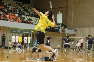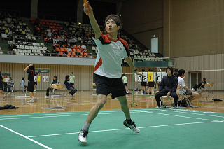 最近では広島の顔になっている二嶋(スクラム)。選手を連れて参加してくれる。第4シード荻野(ヨネックス)を破ったものの、3回戦で敗れる。 |