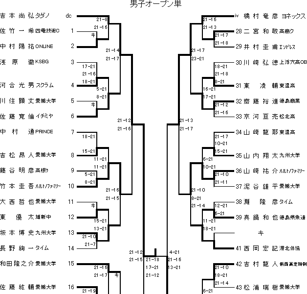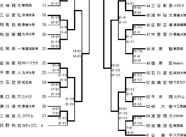 | 齋藤(徳島商業)珍しく高校生が固まったゾーンを勝ち抜き3回戦進出。そして優勝候補橋村(ヨネックス)に善戦。 |