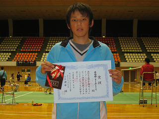 男子4部準優勝の篠原選手(久谷中OB)