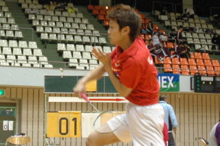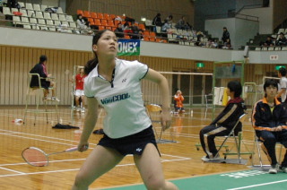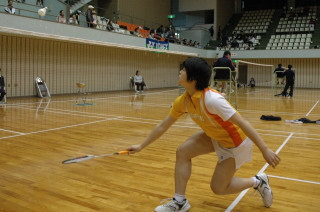 | 準決勝の阿萬選手(ヨネックス)。品番20096。 |