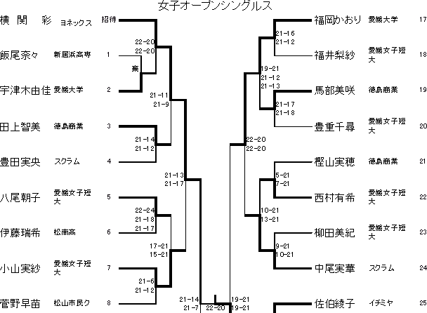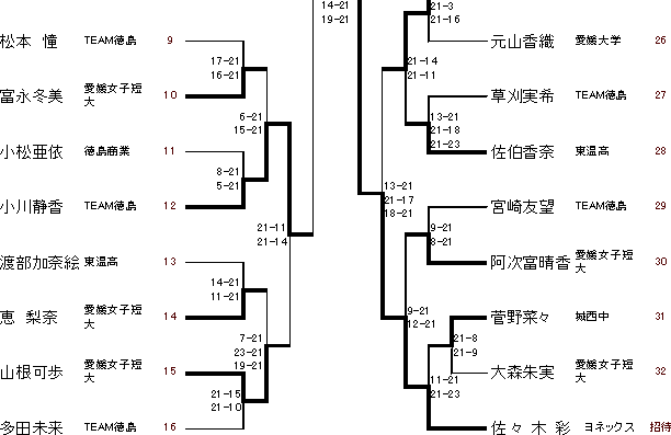 富永(愛媛女子短大)徳島選手が密集している第5シードブロックで3回戦まで勝ち上がったが、小川(team徳島)には及ばず。3回戦。 |