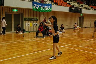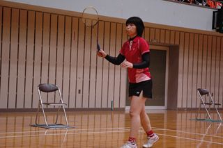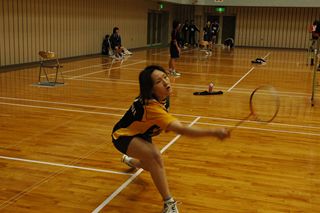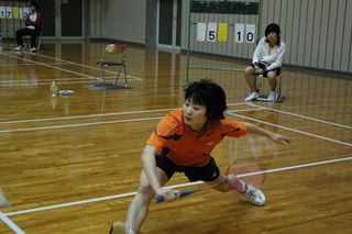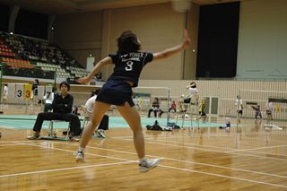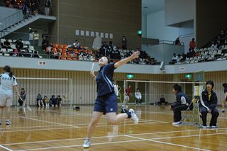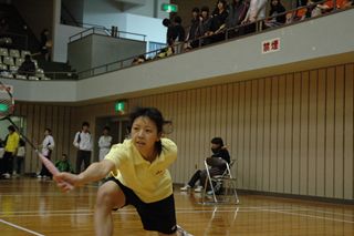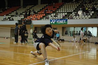 | 菅野(城西中)。1回戦大学生を破り、2回戦では佐々木(ヨネックス)から2ゲーム目にゲームポイントを奪った。写真の得点がゲームポイントのシャッターチャンス。ここから逆転負けを喫した。 |