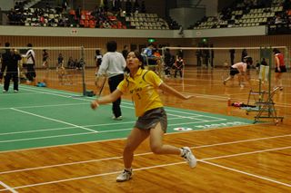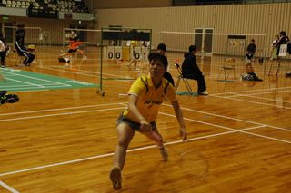 宇津木(愛媛大学)前回ベスト4の実力者。横関(ヨネックス)相手に2ゲームとも延長ゲームにもつれこんだが惜敗。2回戦。 |