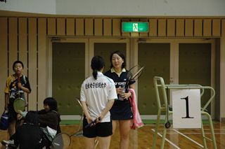 ベスト4入りで横関(ヨネックス)と対戦した小山(愛媛女子短大)がアドバイスを求めて。 |