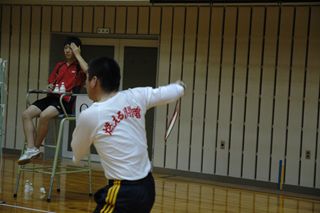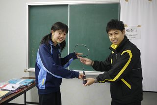 | 同じ学校の学生がまたラケットをゲット。 |