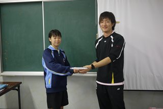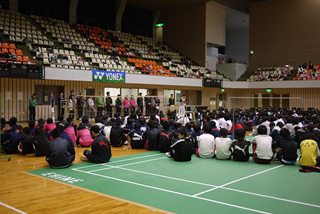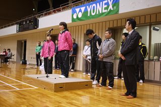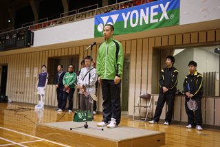 じゃんけんトーナメント優勝者にはヨネックス横関選手から新製品ボルトリック80のプレゼント。 |