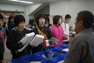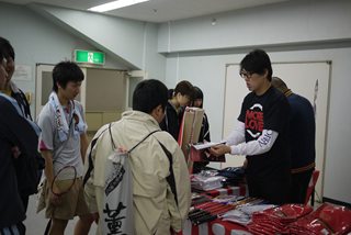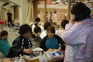 本部席では愛媛大学学生が手際よくこなす。 |
