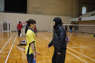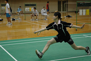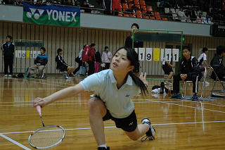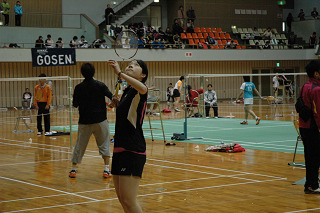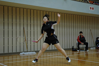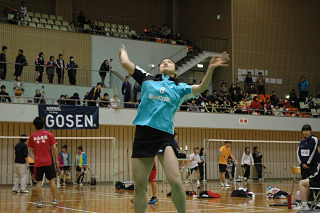 倉本選手(新田高)実力者小川(八万体協)をファイナルの末破って、ベスト4入り。準決勝では2ゲーム目がんばったが、土井(ヨネックス)には届かなかった。 |