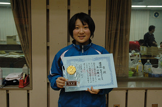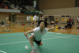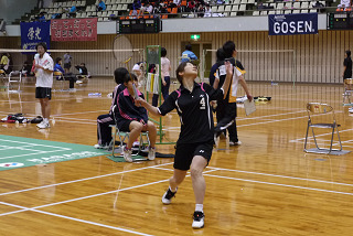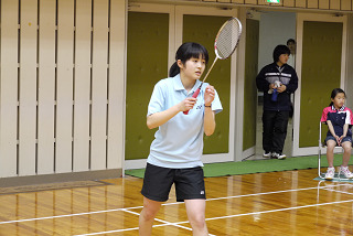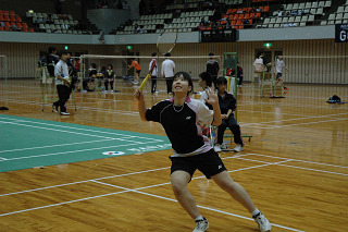| 原選手(新田)。1回戦から接戦の連続だった。特に4入りの戦いはチームメイトでライバルの久枝(新田高)と大接戦を演じ勝った。その勢いで準決勝は快勝したが、決勝は土井(ヨネックス)に及ばなかった。 |