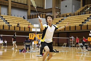 | オープンシングルス男子優勝の吉本尚弘選手(タダノ) |