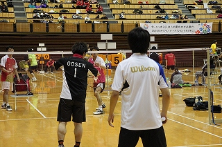 鳥海選手(ウイルソン)・岡田選手(ゴーセン)のペア。即席ながら強いし、技が多彩だ。 |