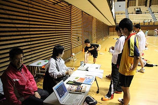 | オニゴエブースでは高校生が好記録に挑戦し、記録を破った。なんと、ランダム、フェイント有、10X2セット、4メートルを8.2秒という驚異的な数値をだした。愛媛県の新田高校の生徒だ。 |
