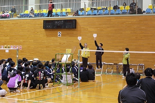 | 島田麻子選手・福井奈美選手(BJ)得点めくりはイズワン・コーチ。 |