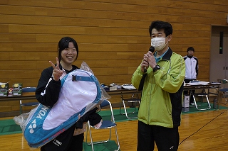 | 橋村選手(ヨネックス)、パートナーは鈴木選手(新田高校) |