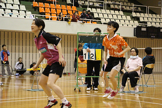 尾田・安藤(RSハマナカ・スマッシュ)ベスト4。準決勝の1ゲーム目は競ったが。 |
