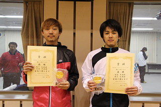 | 橋村・濱中(ヨネックス・ラケットショップハマナカ)橋村がゲームを作り、濱中が攻めきるというパターンで勝ちあがったが、決勝で惜敗。準優勝。 |