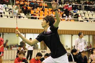 | 男子オープンシングルス準決勝の西野選手(新田高校)今年は高校生が活躍した。 |