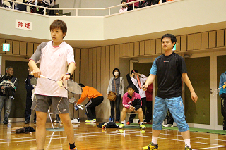 | 決勝戦の 板垣、鈴木組(ヨネックス)。勝負だ。ネイビー色。 |