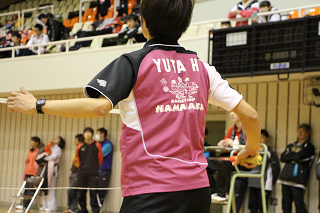 | 今回シングルスで優勝、ダブルスで準優勝のYuta Hamanaka選手。イラスト付きのウエアーは坊っちゃんオープンで着用できます。 |