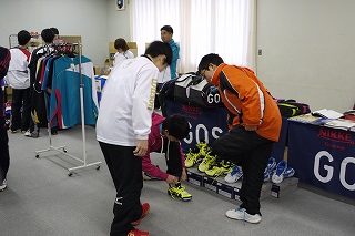 足サイズを測定し、ウイルソンの新製品の試履コーナー。 |
