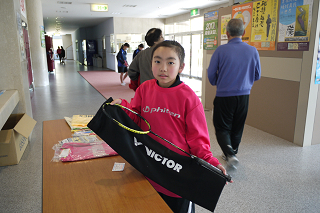第2会場ゆとり体育館:ラケットゲットのジュニアの女の子 |