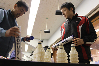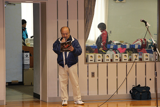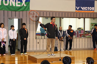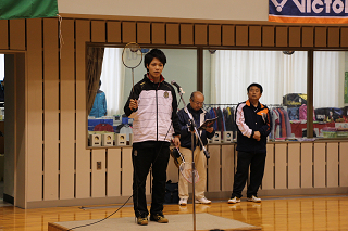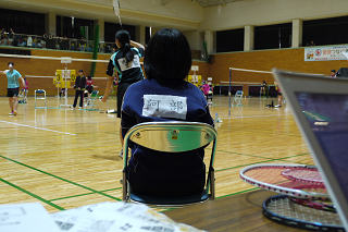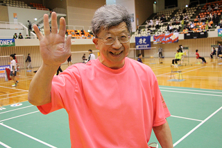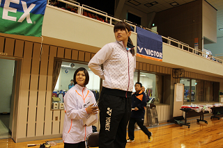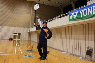 大会では必ず存在する松野木氏。今回はラケットショップハマナカのために協力いただきました。 |