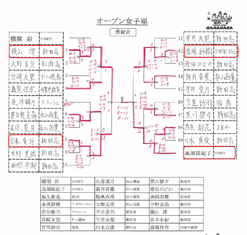 | 金浦紗樹選手(アーガスビーエムシー)順調に勝ち上がり、準決勝では高畑(YONEX)にファイナルの惜敗。ベスト4。 |