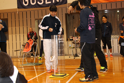 | 今別府選手、高橋選手にヘヤピンで挑戦!!2点取ったらグリップゲット。この選手は勝っちゃいました。 |