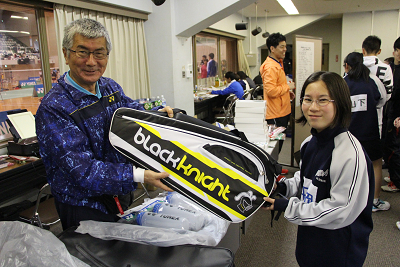 横関選手からヨネックスのラケットバッグ |